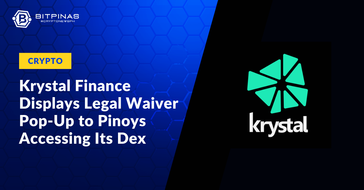 This article is published on BitPinas: DeFi Platform Krystal Finance Displays Legal Waiver Pop-Up to Pinoys Accessing Its Dex