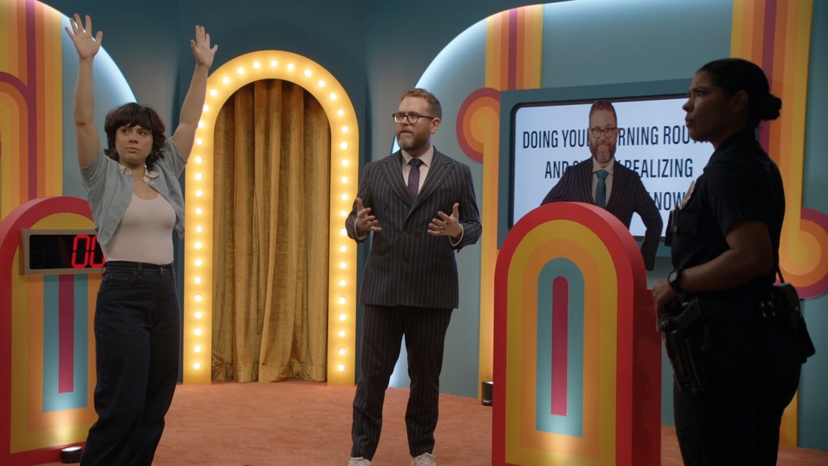 In the ep, Nolan (Nathan Fillion) and Celina (Lisseth Chavez) are dispatched to a robbery call at Dropout TV studios, where, according to the press release, “Nolan encounters a familiar face.” Could the familiar face be among the Dropout cast? Or maybe one of the behind-the-scenes contributors? From the first look images, it’s clear the cops interrupt a shoot day on Game Changer. So expect things to get goofy.